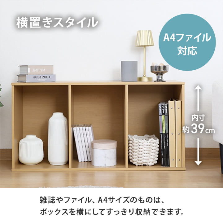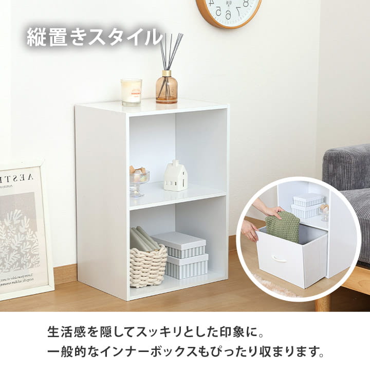 | ■ 使い勝手バツグンのカラーボックス。シンプルなデザインなので様々なテイストのお部屋に合わせやすく、理想のお部屋作りを楽しめます。 ■ 内寸は幅39×奥行27.5×高さ27.5cmで、一般的なインナーボックスもぴったり収まります。生活感を隠してスッキリとした印象に。 ■ リビングや書斎、寝室など、さまざまなお部屋で簡単に収納スペースを作り、散らかるものを1か所にたっぷり収納できます。 ■ 棚板をしっかり固定するので、縦横どちらの向きでも使えます。横にすれば縦長い雑誌やA4サイズのファイルなども収納可能です。 ■ お気に入りの小物を飾ったり、鍵やアクセサリーなど毎日すぐ手に取る物の置き場所としても最適です。 ■ 同じサイズや違うサイズのものなど複数組み合わせるなど、買い足ししやすいのも魅力です。 |
