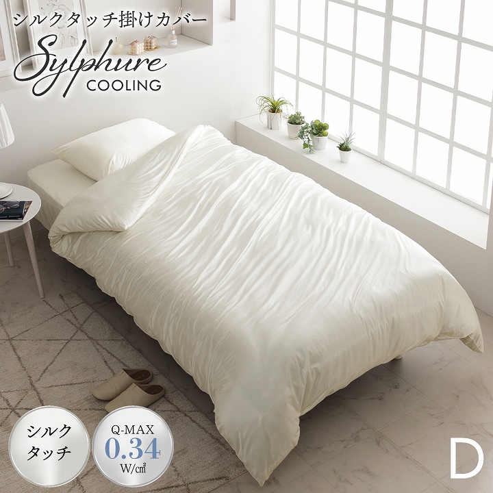 | ■まるでシルクのようななめらかな肌触りの掛け布団カバーです。 ■ひんやり感のある糸を組み合わせて織り上げた接触冷感生地を使用しています。 ■全開ファスナーで取り付け簡単。内側にはスナップボタン式の布団留めひも付き。 |