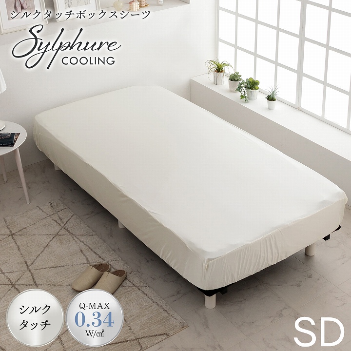 | ■まるでシルクのようななめらかな肌触りのボックスシーツです。 ■ひんやり感のある糸を組み合わせて織り上げた接触冷感生地を使用しています。 ■四周ゴム付きですっぽり包み込むので取り付け簡単。 |