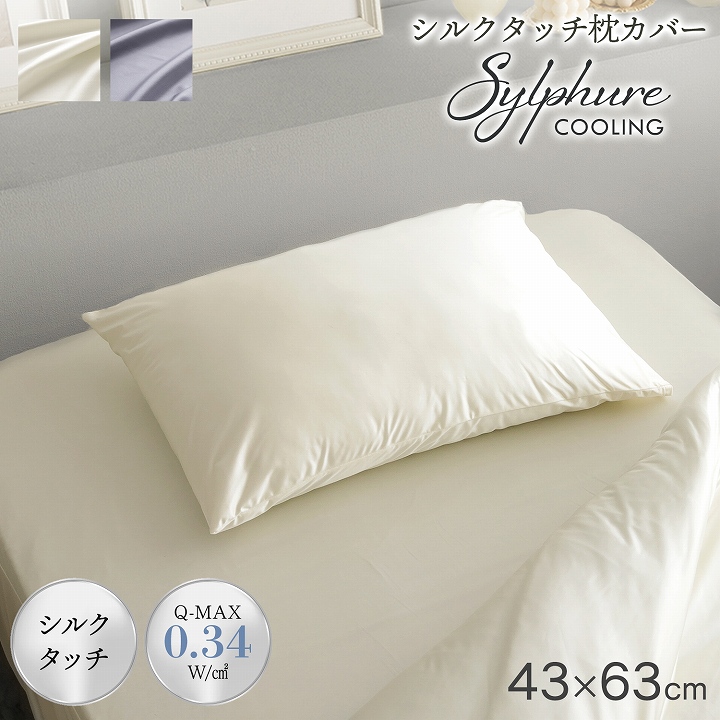 | ■まるでシルクのようななめらかな肌触りの枕カバーです。 ■ひんやり感のある糸を組み合わせて織り上げた接触冷感生地を使用しています。 ■ノンファスナータイプなので取り付け簡単。 |