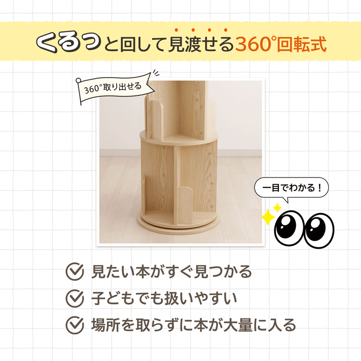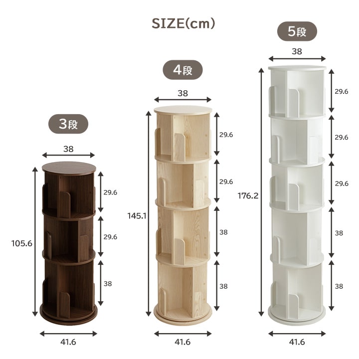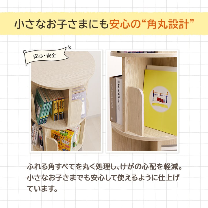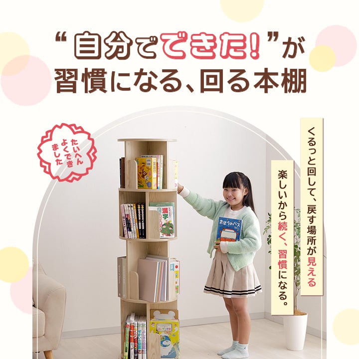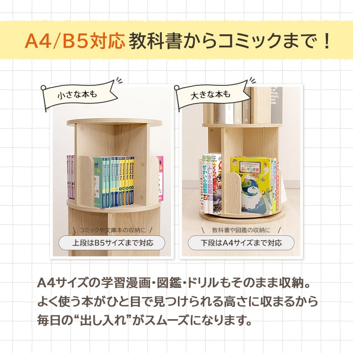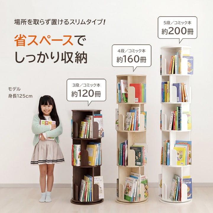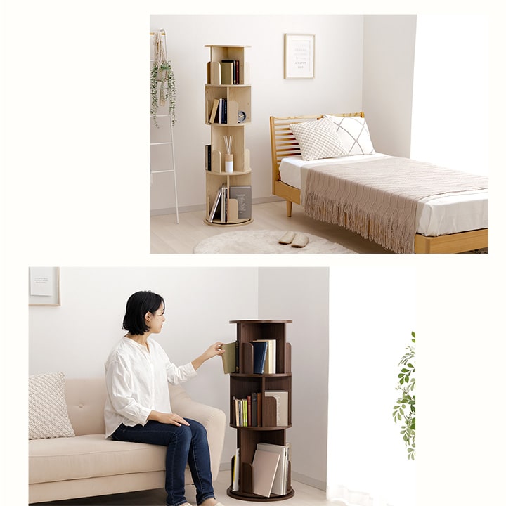 本棚 回転 回転式本棚 ラング 3段 おしゃれ 木製 収納棚 収納 コミック 絵本棚 おしゃれ 木製 リビング 新生活 子供部屋 文庫本 書斎 A4 B6 コンパクト 木目