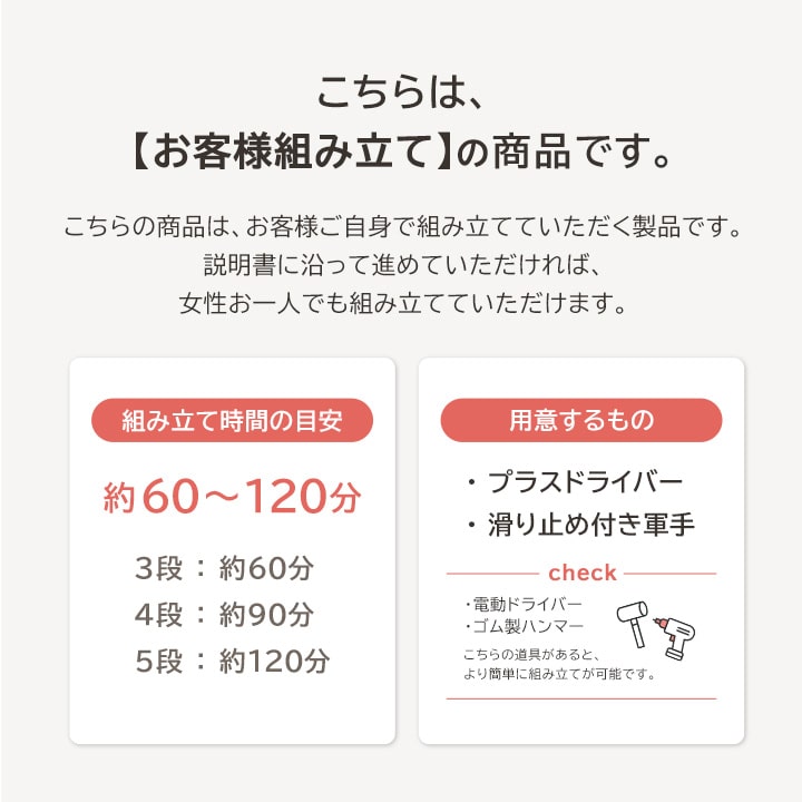 ●ドライバー1本で簡単に組み立て可能。