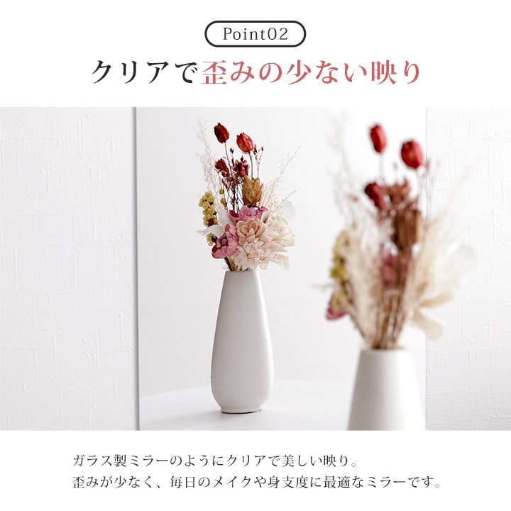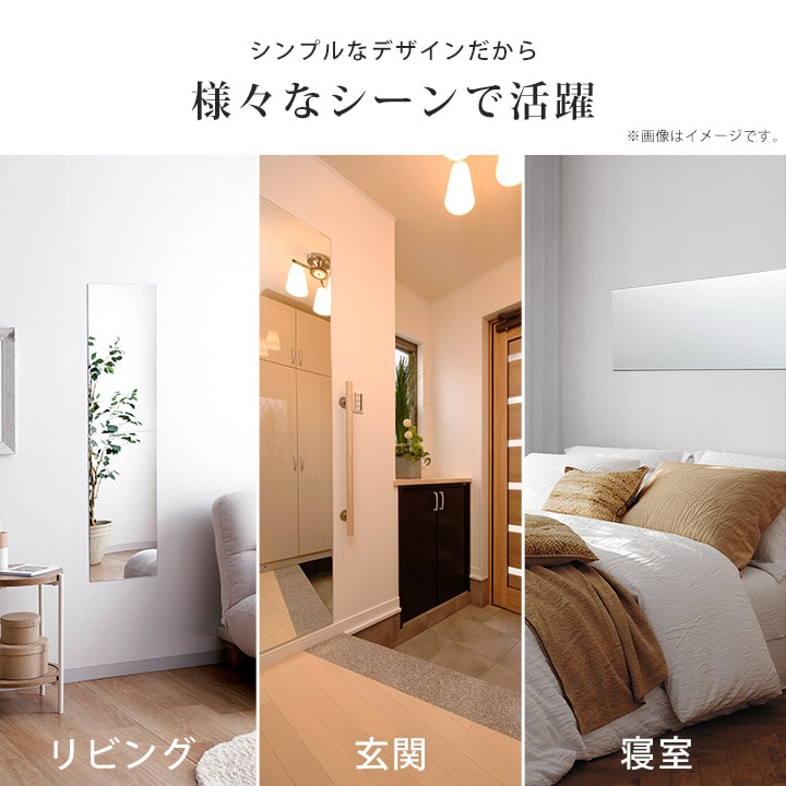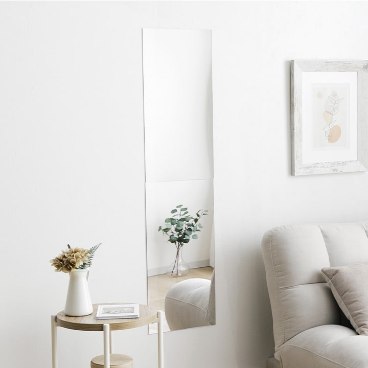 | ■ ガラス不使用のアクリル製で、落としても割れにくく安心。 ■ ガラス製ミラーのようにクリアで美しい映り。歪みが少なく、毎日のメイクや身支度に最適なミラーです。 ■ お好みのスタイルで自由に組み合わせて使える。 ■ 2枚つなげても、継ぎ目がほとんど気にならない自然な仕上がり。 ■ 穴あけ不要で手軽に取り付け可能。 |
