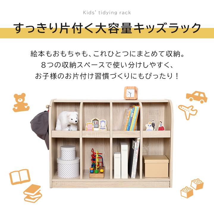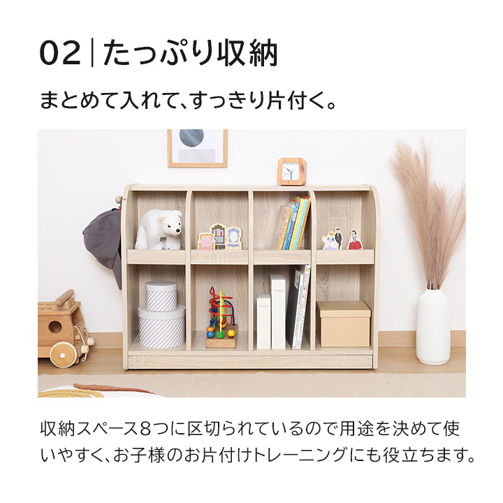 ●収納スペース8つに区切られているので用途を決めて使いやすく、お子様のお片付けトレーニングにも役立ちます。
