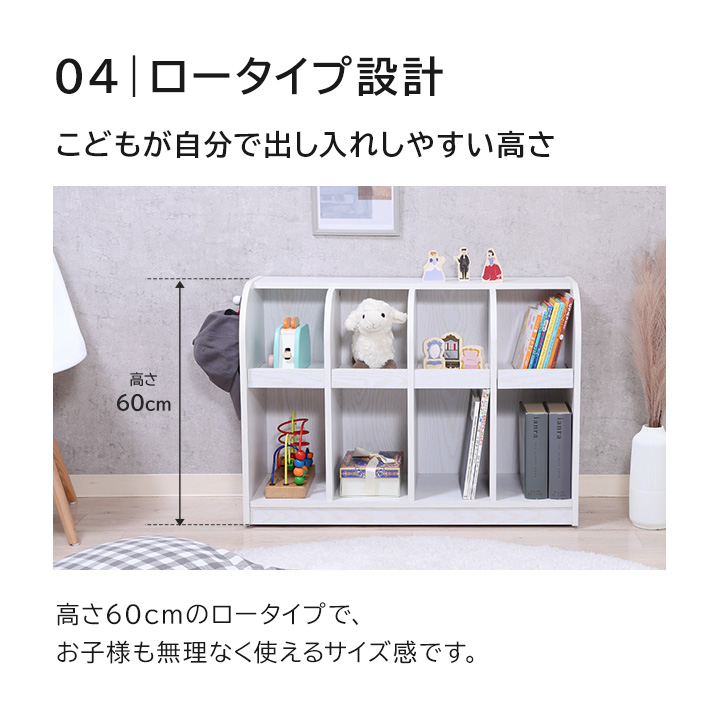●お子様が使いやすい高さ60cmのロータイプです。また、隠しキャスター付きなので、お掃除の際の移動も楽々です。