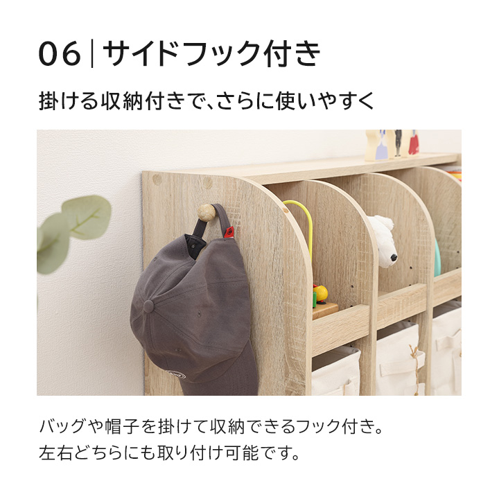 ●バッグや帽子を引っ掛けて収納できます。フックは左右どちらでも取り付けできます。