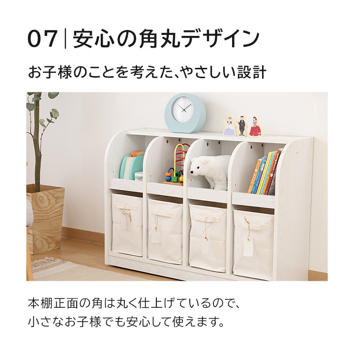●お子様も安心して使えるように、本棚正面の角は丸くデザインしています。