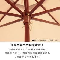 ■ 大きいサイズのガーデン用パラソル。 ■ 陽射しが強い夏はこれ一本でくつろぎの場所が作れます。 ■ クランクで傘を簡単に開閉できます。 ■ 庭やデッキ、テラスなど使用できる場所は様々です。 ■ アウトドア、バーベキュー、バルコニーでの読書などのシーンにどうぞ。 ※ 腐敗の原因となりますので、長期間の屋外での使用は避けてください。 ※ 一般家庭での使用を想定して設計しております。業務用を目的とするご購入はお控えいただきますようお願い申し上げます。 ※ お客様組み立て品です。 ※ パラソルベースは別売りです。 ※ パラソルとベースのみの場合は安定感が損なわれますので、ガーデンテーブルの併用をおすすめいたします。 ※ 画面上のカラーはご使用ブラウザやモニターの設定により、実物とは若干異なる場合がございます。あらかじめご了承の上、ご注文をお願いいたします。 | |