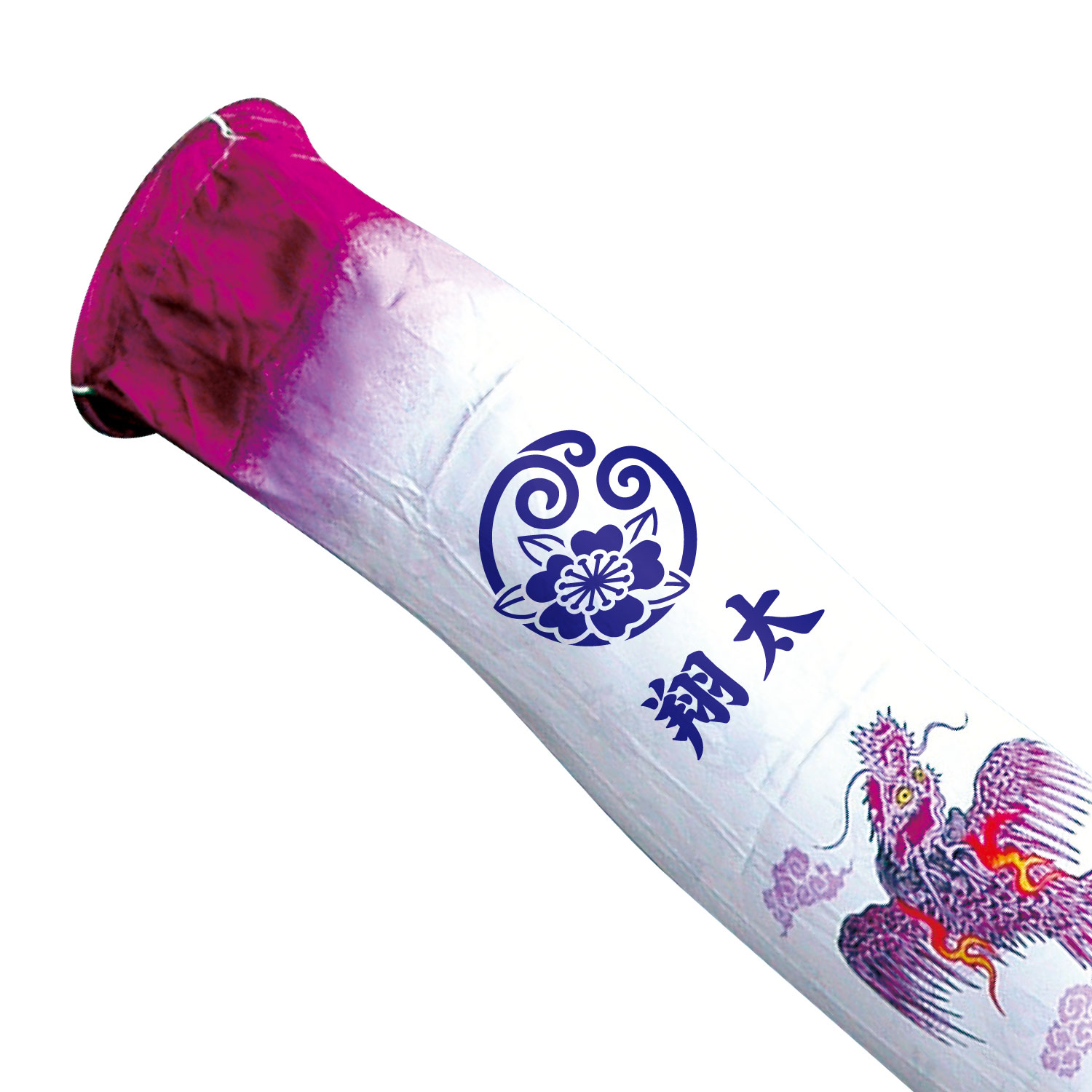 鯉のぼりの吹き流しに家紋や花個紋、お名前を入れることができます。