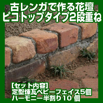 アンティークレンガで作る花壇ピコトップタイプ2段重ね(送料込)花壇 レンガ 置くだけ 庭 ガーデン おしゃれ 国産煉瓦 ブロック ガーデニング レイズドベッド