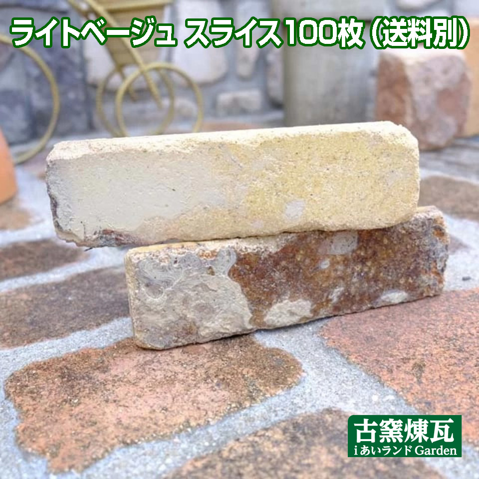 アンティークレンガ ライトベージュスライス100枚(注文生産品・送料別途・要見積り)煉瓦 壁面用 壁面用レンガ ガーデン おしゃれ タイル