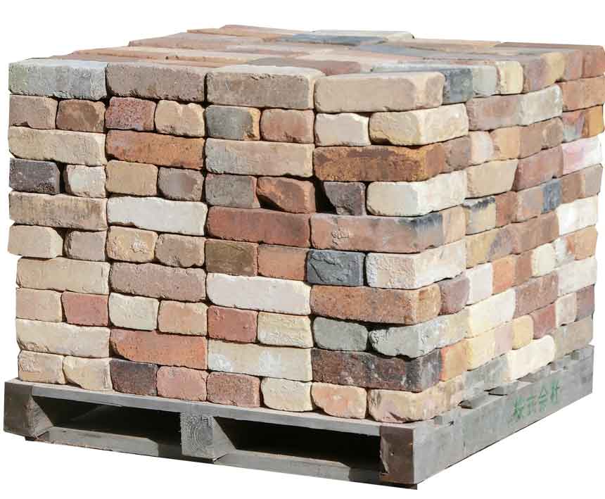 東備地区は国内生産の3割のシェアを持っています。廃棄レンガは、粉砕して再度レンガの原料に成ります。そのため、全国から廃棄レンガが東備地区に集積されてきます。昨今のガーデニングブームにより古レンガが注目されており、エクステリア用敷きレンガ、積レンガ、花壇やバーベキューコンロ、暖炉などエクステリア全般に利用されています。