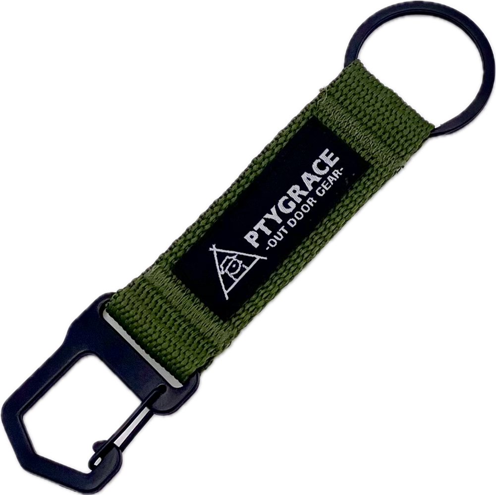 PTYGRACE ミリタリーキーホルダー カラビナ付 アクセサリー バッグ アウトドアギア オリーブグリーン