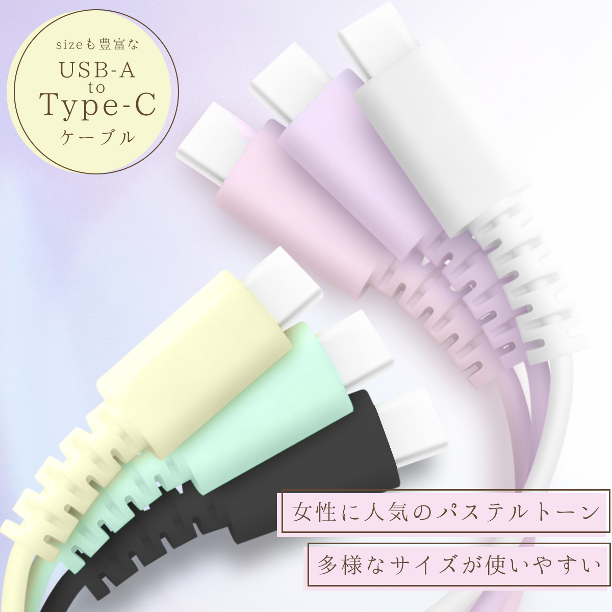 USB A to Type-C ケーブル USB-C 充電ケーブル iPhone15 ケーブル Android タイプcケーブル タイプc 急速充電 10cm 20cm 50cm 1m 1.5m 2m パステルカラー