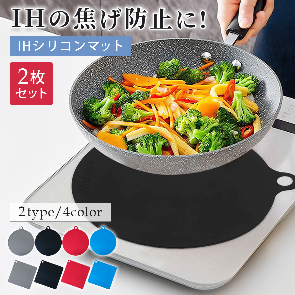 IHマット IHカバー 2枚セット 焼け焦げ防止 シリコンマット 汚れ防止 水洗い可 丸形 四角型 丸洗いOK おしゃれ ズレにくい 滑り止め 汚れ防止 キズ防止