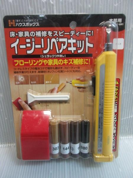 ハウスボックス イージーリペアキット 木部用 電池コテ ミニヘラ付 ダーク新品になります。 床・家具の補修をスピーディーに!イージーリペアキット フローリングや家具のキズ補修に!!コードレスタイプの電池コテで場所も選ばずスピーディーな補修作業が行えます。 新建材(オレフィン化粧シート)にも対応。えぐれ、凹み、キズ シェラックつや消し カラー: ダーク※電池は別売りとなっておりますお客様で別途ご用意ください。 在庫状況が常時変動しております必ず購入前にご質問ください。※画像は代表イメージです。※本商品は改良や定期的に仕様変更される場合がり実際の写真と異なる場合がございますが同型番の改良された商品は新型の商品となりますのでご了承ください。スペック等の変更はございませんご安心してお使いください。本品は別倉庫に在庫がある為入金確認後から納期が数日かかりますご了承ください。