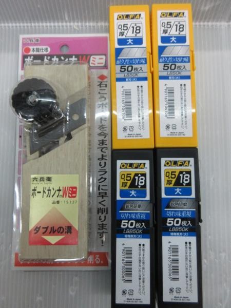 六兵衛 替刃式 本職仕様 ボードカンナW ミニ No15137 オルファ OLFA 0.5厚18 カッター 替刃 5点セット新品になります。