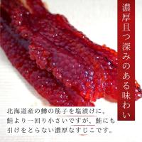 鮭よりも一回り小さめの鱒の筋子を塩で漬け込みました。昔ながらのねっとり濃厚な味わいはご飯との相性バツグン。御飯の上に載せてよし。おにぎりの具材にもどうぞ。筋子の味がご飯に移ったところを頬張る幸せはこの上無し!