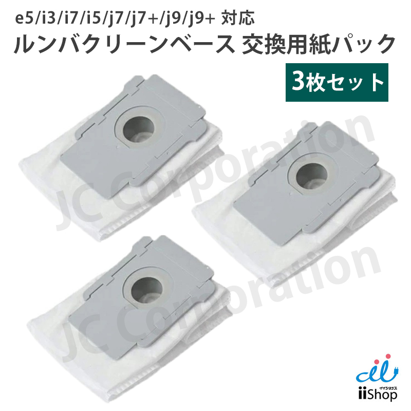 ルンバ 掃除機用 クリーンベース 紙パック 3枚セット (互換品) e5 i7 i5 i3 i2 j9 j7 s9 などに対応 ダストバッグ アイロボット(定形外郵便発送)J38-RU-34