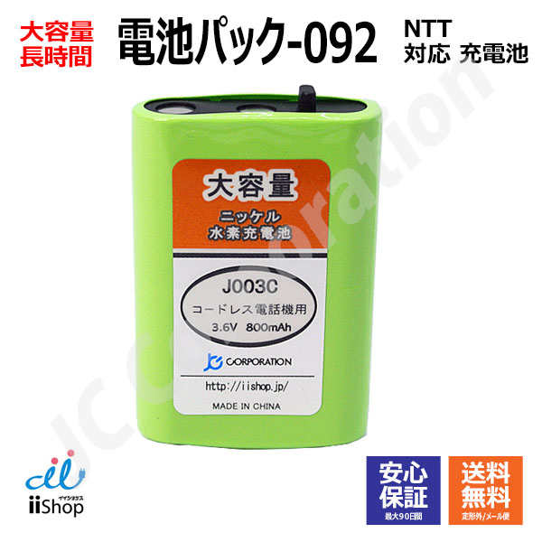 NTT対応 CT-電池パック-092 対応 コードレス 子機用 充電池 互換 電池 J003C コード 01958 大容量 充電 電話機 バッテリー 電池交換 デジタル コードレスホン