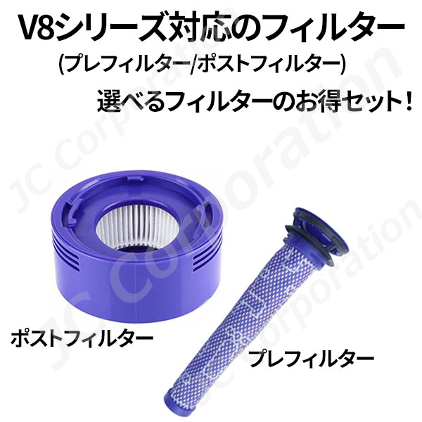 (クリーニングブラシプレゼント)ダイソン対応 V8 シリーズ用 バッテリー ネジ・ドライバー付 +選べるフィルター セット SV10 D09B 07134-SELECT