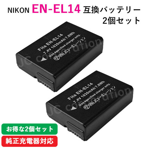 2個セット ニコン(NIKON) EN-EL14 / EN-EL14A 互換バッテリー残量表示可 純正充電器対応 コード 00104-x2