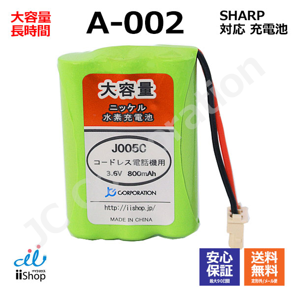 シャープ対応 SHARP対応 A-002 UBATM0025AFZZ HHR-T402 BK-T402 対応 コードレス 子機用 充電池 互換 電池 J005C コード 02023 大容量 充電 電話機 バッテリー