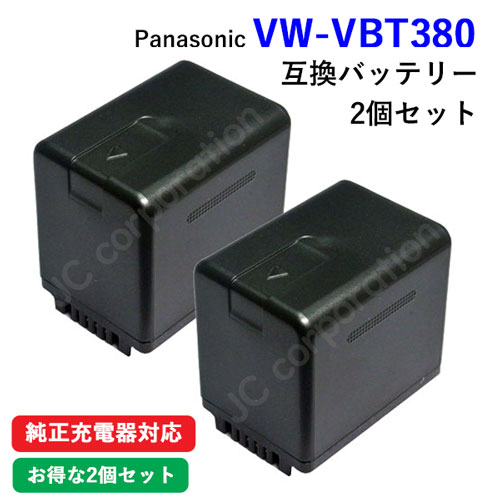 2個セット パナソニック(Panasonic) VW-VBT380-K 互換バッテリー (VBT190 / VBT380 ) (定形外郵便発送) コード 00647-x2