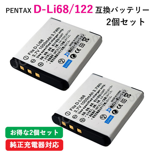 2個セット ペンタックス(PENTAX) D-LI68 / D-LI122 互換バッテリー コード 00272-x2
