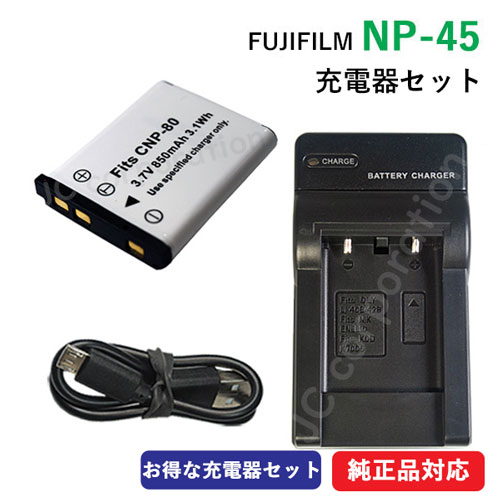 充電器セット フジフィルム(FUJIFILM) NP-45 NP-45A NP-45S / カシオ(CASIO) NP-80 NP-82互換バッテリー +充電器(USB)コード 00753-00371