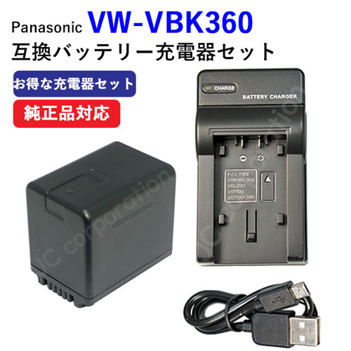 USB充電器セット パナソニック(Panasonic) VW-VBK360-K 互換バッテリー + 充電器(USBタイプ) (定形外郵便発送) コード 00593-00654