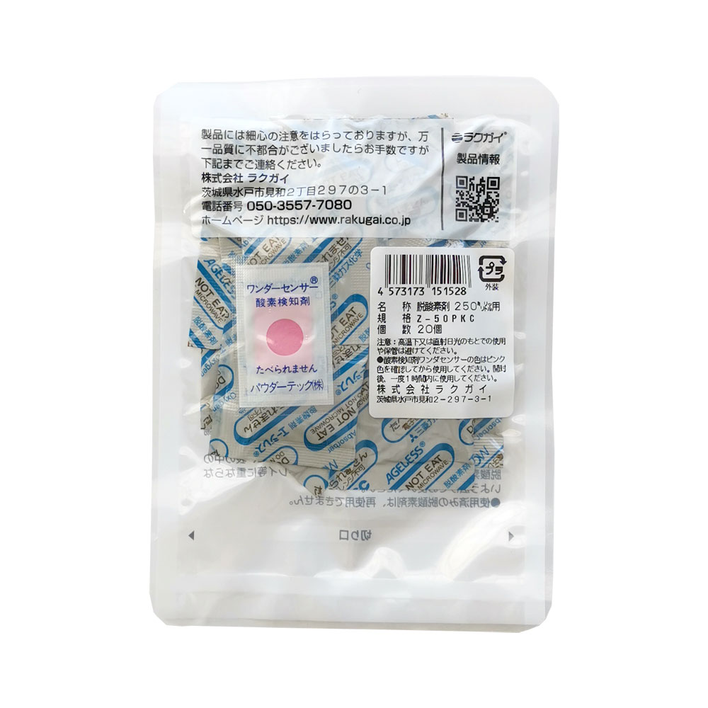 脱酸素剤エージレスZ-PKCシリーズは、低水分用、香り保持性に優れます。乾燥剤と併用できます。 こちらの商品は、20個毎に小分けした【エージレス Z-50PKC】です。機能及び性質は変更ありません。 ご家庭、菓子・料理教室など、手軽な少量パックです。