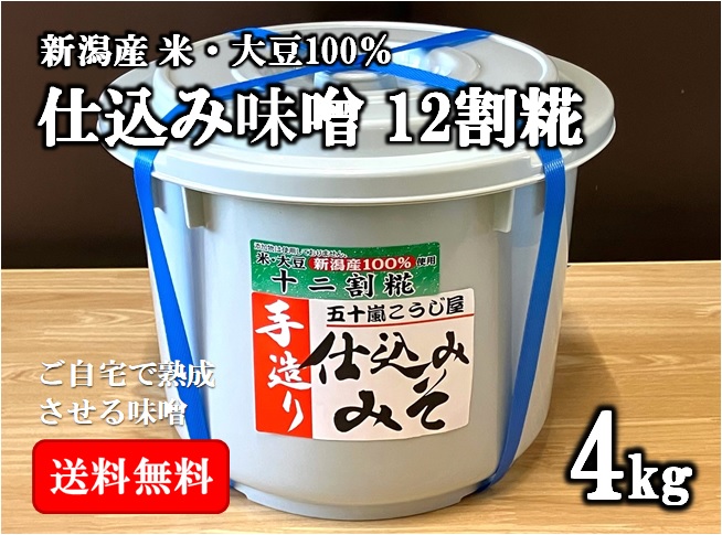 糀【麹】を十割糀【麹】より2割増やした、まろやかで上品なコクが深い味わいの越後味噌をお客様オリジナルの風味の味噌に仕上げてお召し上がり下さい。