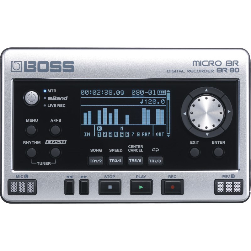 BR-80は、手のひらサイズのコンパクト・ボディながら、本格的な音楽制作を行うことが可能なMICRO BRの最新モデルです。高級感のあるスタイリッシュなアルミ・ボディを採用し、本体にギタ−接続するだけで練習から録音、そして曲づくりまでがこれ一台で行えます。