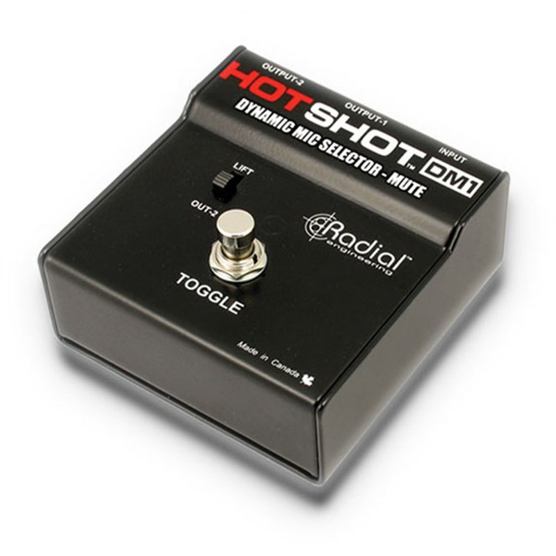 Radial HotShot DM1は、フットスイッチでマイクのメインPAへ出力をミュートし、モニターシステムやインイヤー・モニターなどを通じて、他のミュージシャンやスタッフとコミュニケーションを可能にする出力セレクターです。