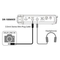 ※DR-100MKIIIなど一部ヘッドホン出力とライン出力を別に持っているハンディレコーダーの場合は、ヘッドホン出力に接続してください...