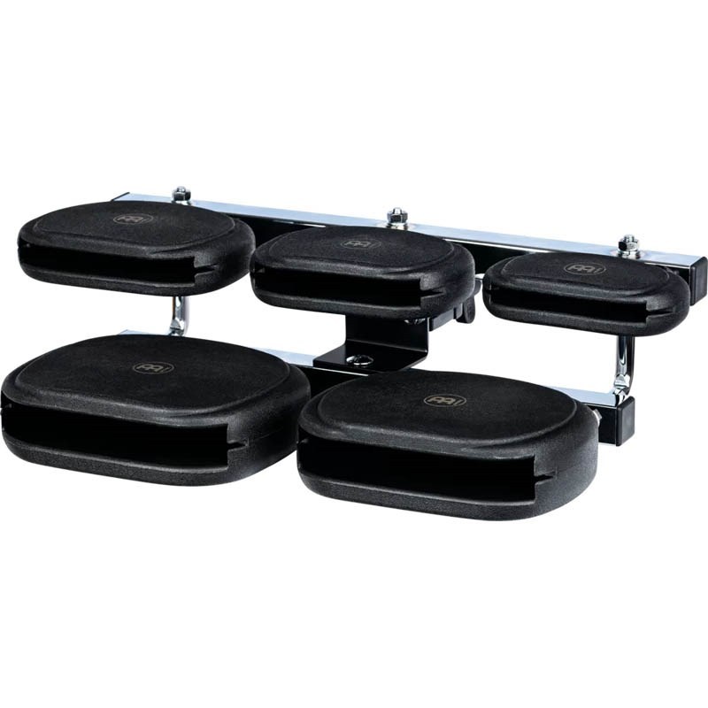 耐久性、耐候性の優れた合成素材で作られた5点ブロックセット。ハイからローまで5種のピッチを持ったホローボディのブロックは、豊かな表現力を持ちます。パーカッションピットからドラムキットまで様々な音楽状況に順応し、対応径調整可能なウイングボルト&ナットで、標準的なドラムハードウェアパイプへ固定することができます。