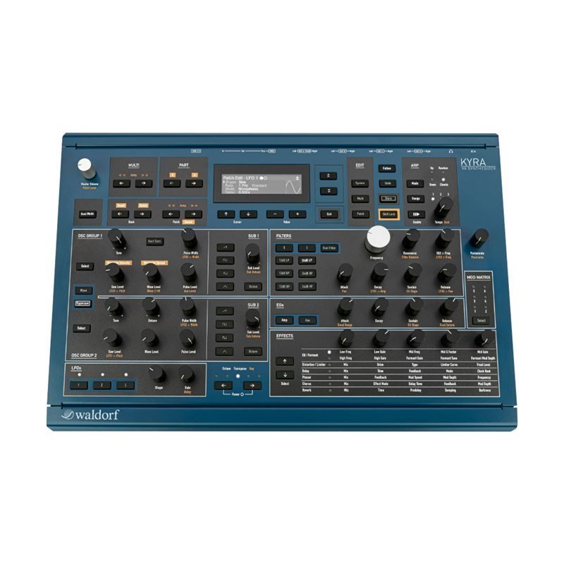Kyra(カイラ)は最大8パートを同時に使用できる、史上最もパワフルなバーチャル・アナログ・シンセサイザーです。真のマルチティンバー・シンセサイザーとして、パートごとに最大32ボイス/全体で最大128ボイスを同時に使用でき、それぞれのパートを完全に独立した「1台のシンセサイザー」として使用できます。パワフルなオシレーターやフィルター、EG, LFO, モジュレーション・マトリクスなどのモジュレーター、9種類のエフェクトは、8パートすべてで同時に使用できることが約束されており、従来のバーチャル・アナログ・シンセやソフトウェア・シンセのように、本体の処理能力や CPU 負荷といった煩わしい概念を気にする必要は一切ありません。