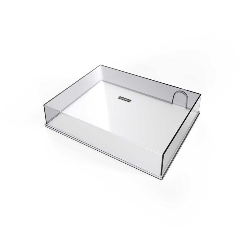 強度と耐久耐熱性に優れたエンジニアード・ポリマー素材(エンジニアリングプラスチック)を採用し、ホコリ、傷、日常の摩耗から機材を確実に保護します。縁(エッジ)部分は曲線的なデザインで、安定した確実なフィット感を実現。また、背面には成形された凹み(リセス)があり、保管時にトーンアームとカウンターウェイトを安全に保護します。