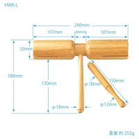 HWB-Lはラージサイズのウッドブロックで、持ち手を挟んで左右に異なるピッチの木の筒がついている独特の形状をしています。天然木を使用しており、木魚のようにバチで叩いて演奏します。リズムや強弱を変えることで、多彩な音色の変化を楽しむことができます。