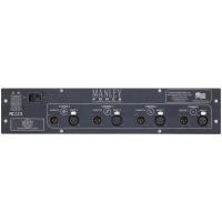 マイクロフォンからの信号は金メッキされたXLR端子からダイレクトにマイク入力トランスフォーマーである MANLEY IRONR に送られます。ラインレベルの信号やギターやキーボードなどの楽器の信号は、フロントパネルの1/4インチ 10 MΩ のHi-Z(DI)入力を使用します。この場合、入力レベルコントロールは可変式の入力パッドとして適切なレベル設定に役立ちます。もちろん、位相反転スイッチと 120 Hz のハイパスフィルターも回路に組み込まれています - そして、12AX7 の双三極のアンプ段はピュアクラスAで動作します。