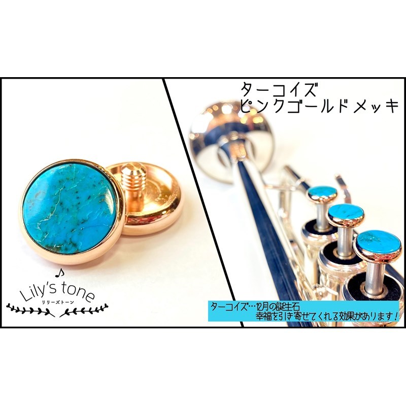 リリーズトーン / ヤマハ用 トランペット ピストン ボタン ターコイズ ピンクゴールドメッキ仕上げ 3個 (1セット)
