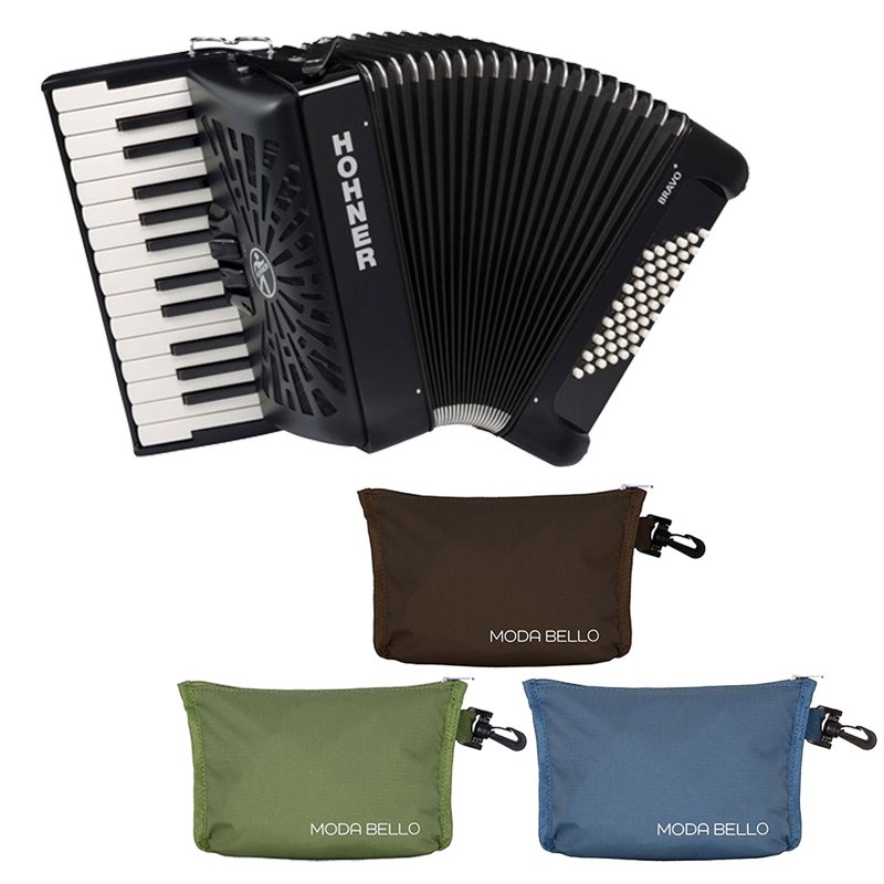 (アコーディオン専門店・出荷前検品発送)Bravo II 48 BLK +レインカバーセット HOHNER ホーナー アコーディオン 入門向け ピアノ式 26鍵盤 小型 【雨の日アコーディオンレインカバーセット】