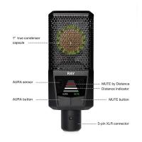 さらにRAYは専用MUTEボタンを備えた世界初のプロ用XLRマイクロホンであり、MUTEが作動すると明確な 視覚的フィードバックが得られ、MUTE by Distanceが作動した場合にも機能します。
