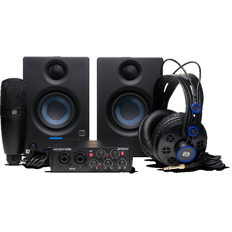 PreSonus AudioBox 96k Complete Bundleは、スタジオ・クオリティのサウンドを求める自作オーディオ・クリエイターのためのキットです。高忠実度のAudioBox 96 USB 2x2/24bit/96kHzオーディオ・インターフェイス、6ヶ月のStudio One Pro+を含むプロ・レコーディング・ソフトウェア・アクセス、ローエンドのパンチが詰まったパワフルなEris 3.5スタジオ・モニター、人間工学に基づいたHD7高音質ヘッドフォン、M7 MKIIプロフェッショナル・カーディオイド・コンデンサー・マイクロフォンを備えたPreSonus AudioBox 96k Complete Bundleは、プロフェッショナルなクリエイションに必要なすべてを提供します。