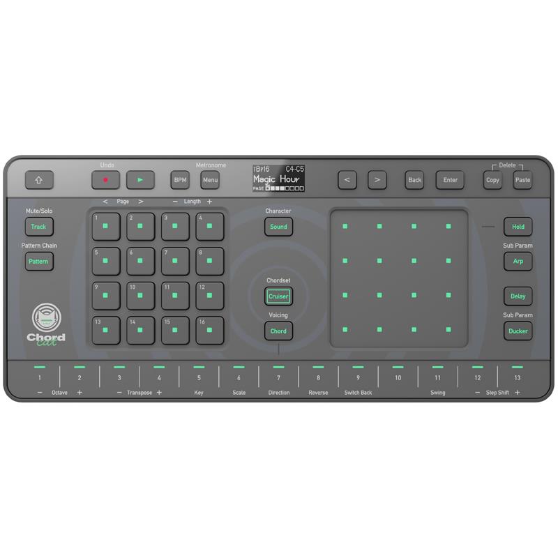 Chordcat専用ソフトウェアのChordcat Manager※2を使えば、本機とPC/Mac間でシーケンス・パターンのインポートおよびエクスポートが可能です。本機で作成したパターンをDAWソフトウェアにエクスポートして音源を差し替えたり、DAWソフトウェアで作成したパターンを本機にインポートしてアレンジを加えることも可能です。また、Chordcatの製品...
