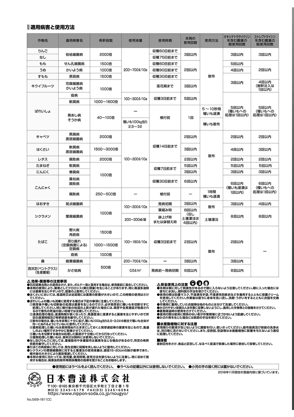 ■農薬の種類:オキシテトラサイクリン・ストレプトマイシン水和剤