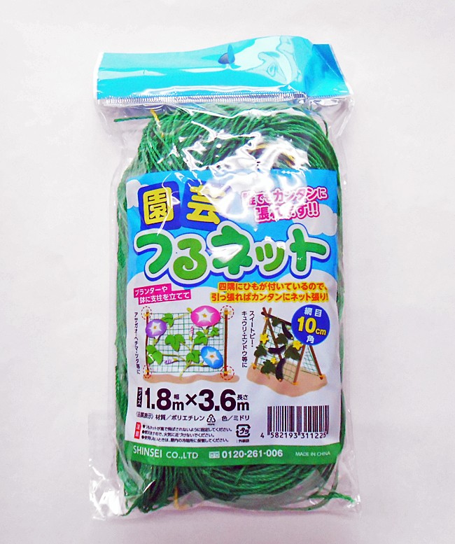 園芸用のネット。きゅうりやゴーヤなどのつる性の植物をからませたり、緑のカーテンのネットとしてご利用ください。
