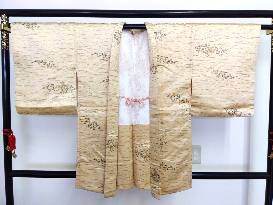アンティーク 羽織り 正絹 飴色 南天 羽織丈80cm 929 ggp