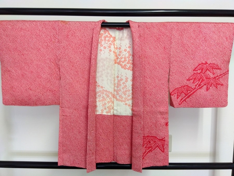 アンティーク 羽織り 絞り ピンク 薔薇色 笹の葉模様 羽織丈73.4cm 939 ggp